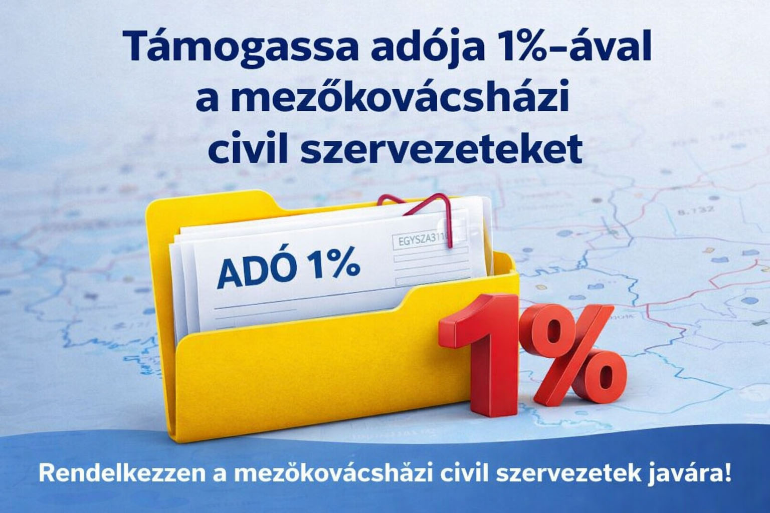 Kérjük, hogy támogassa adója (szja) 1%-ával egy mezőkovácsházi civil szervezet munkáját (alapítvány, egyesület). Támogatása itt helyben, Mezőkovácsházán hasznosulhat.