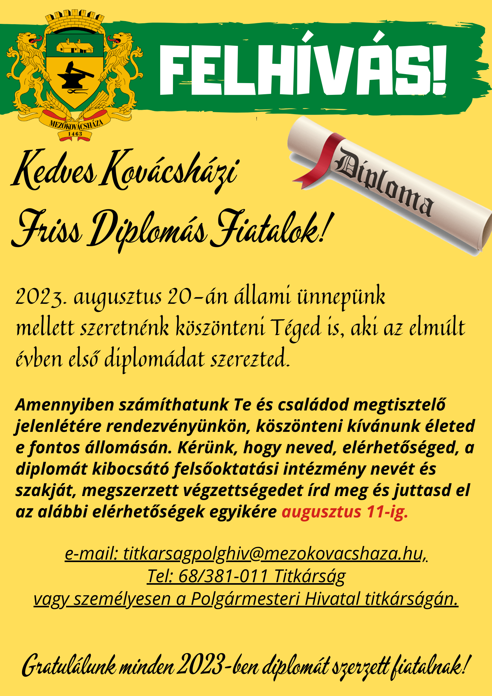 2023. augusztus 20-án állami ünnepünk mellett szeretnénk köszönteni Téges is, aki az elmúlt évben első dipolomádat szerezted.